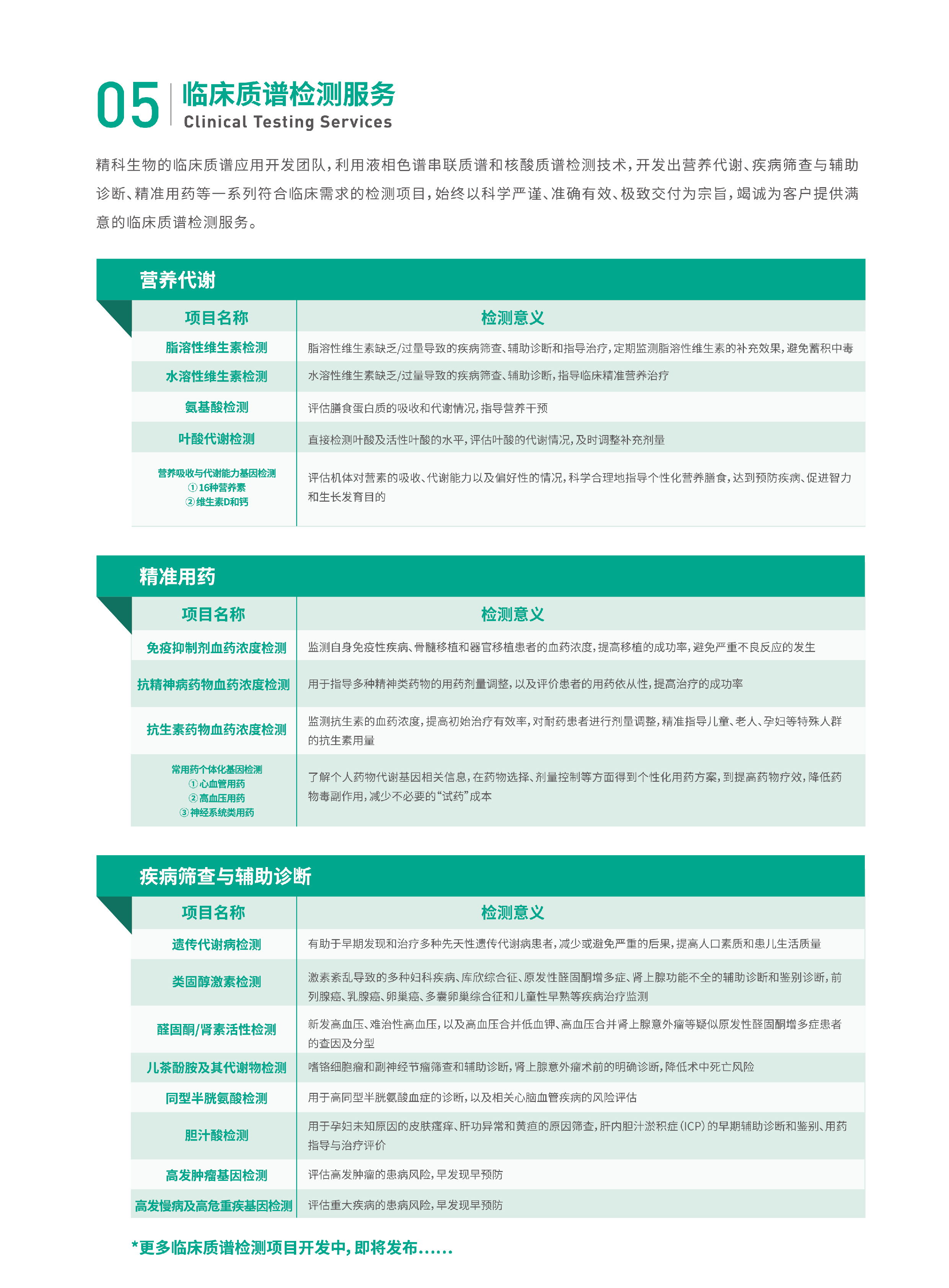 精科生物拥有历经多年潜心研发、性能国内领先的液相色谱-三重四极杆串联质谱系统,并配套自主研发的全自动样本处理系统和多种试剂盒和方法学,适合不同应用场景和市场需求。同时公司在全自动化微生物质谱、核酸质谱、微量元素分析质谱、流式质谱等平台亦有多维度全方位布局,形成完整的临床质谱产业生态体系。